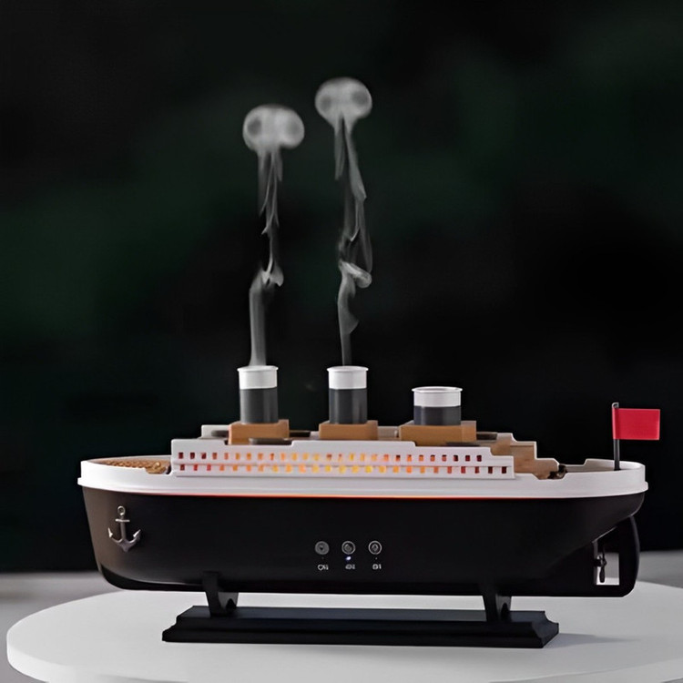 بدنه این دیفیوزر با دقت از متریال باکیفیت ABS و PP ساخته شده و با جزئیات زیبای کشتی تایتانیک تزئین شده است. زمانی که دستگاه را روشن میکنید، افکت مه بههمراه نور LED هفترنگ (قابل تغییر یا ثابت) جلوهای شبیه یک اثر هنری زنده به فضا میدهد. این ترکیب نهتنها چشمنواز است، بلکه حس آرامش و رهایی را به شما القا میکند.