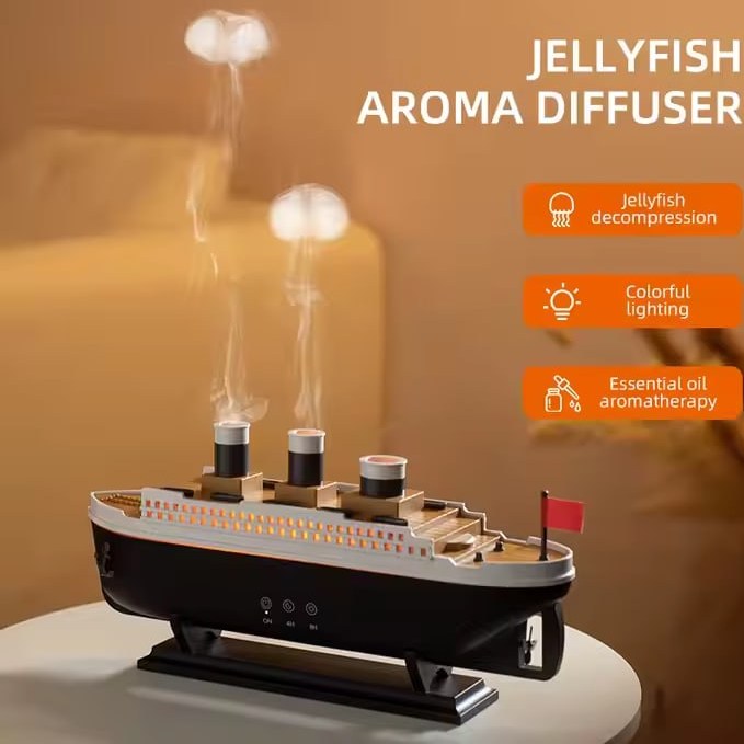 بدنه این دیفیوزر با دقت از متریال باکیفیت ABS و PP ساخته شده و با جزئیات زیبای کشتی تایتانیک تزئین شده است. زمانی که دستگاه را روشن میکنید، افکت مه بههمراه نور LED هفترنگ (قابل تغییر یا ثابت) جلوهای شبیه یک اثر هنری زنده به فضا میدهد. این ترکیب نهتنها چشمنواز است، بلکه حس آرامش و رهایی را به شما القا میکند.